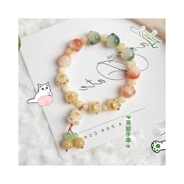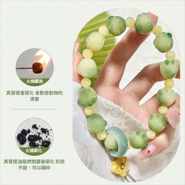 梵花 小青檸貓爪菩提子手串炭燒貓咪白玉菩提根手持女盤玩文玩佛珠手鍊