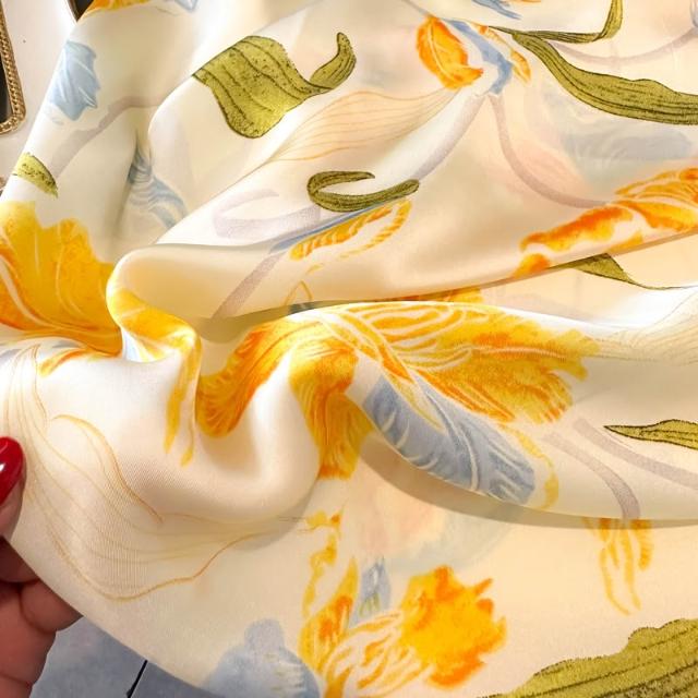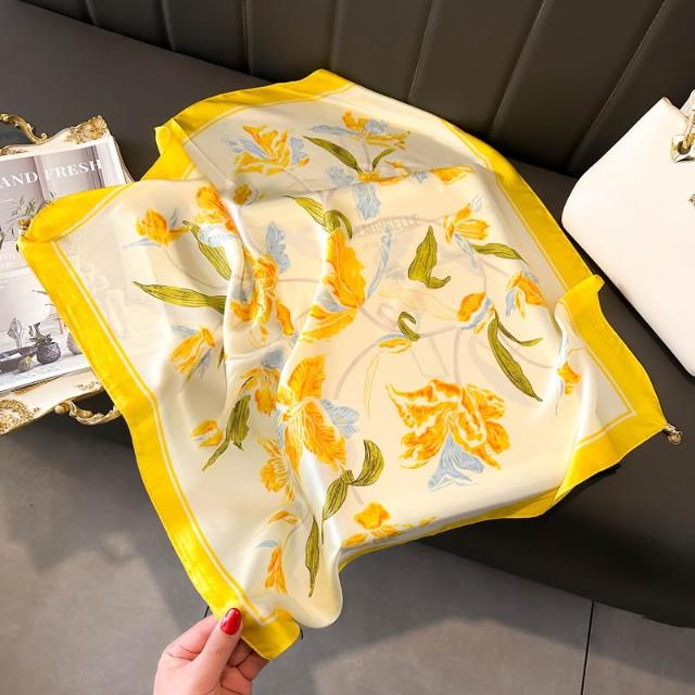 梵花 磁吸扣三角小方巾絲巾女嫩黃鵝黃色春秋夏季護頸飾圍脖子薄圍巾70