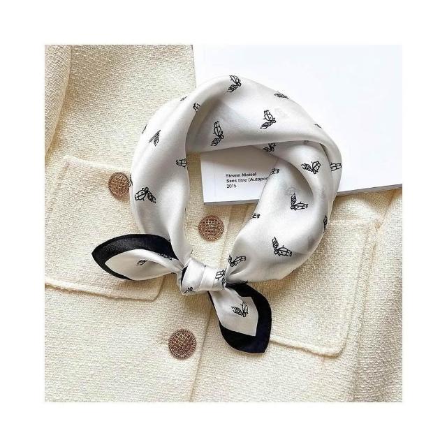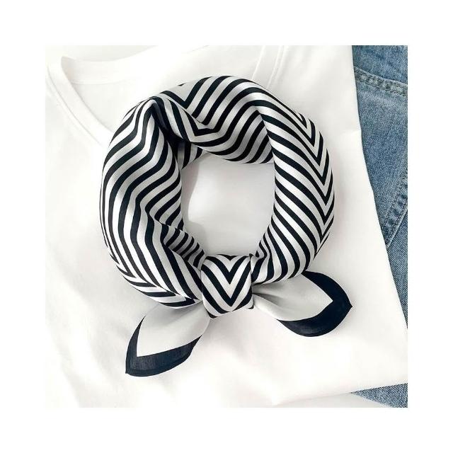 梵花 絲綢桑蠶絲絲巾簡約黑白條紋真絲圍巾女小方巾領巾披肩