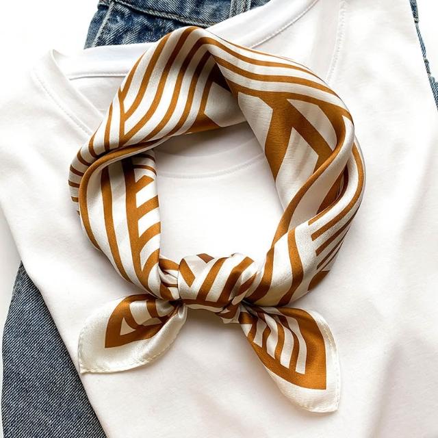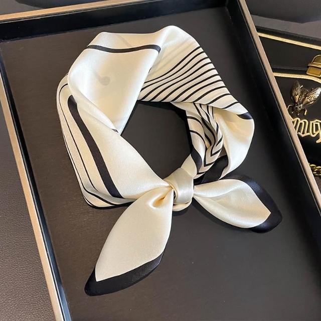 梵花 絲綢桑蠶絲絲巾簡約黑白條紋真絲圍巾女小方巾領巾披肩