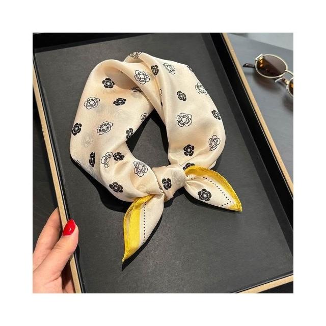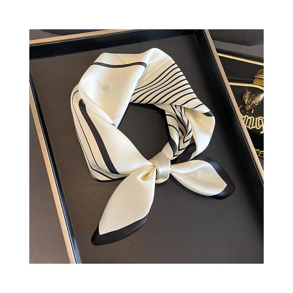 梵花 絲綢桑蠶絲絲巾簡約黑白條紋真絲圍巾女小方巾領巾披肩