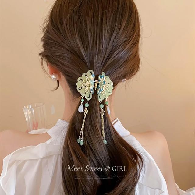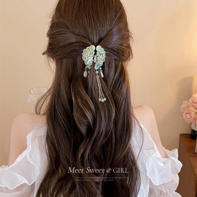 梵花 全新中式蝴蝶步搖流蘇抓夾女古風髮飾旗袍漢服國風夾子頭飾髮夾新款