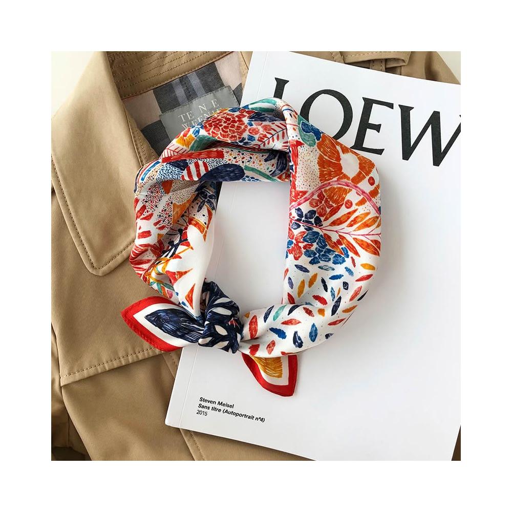 梵花 絲綢女春秋季韓版百搭七彩色圍巾小領巾真絲桑蠶絲絲巾小方巾