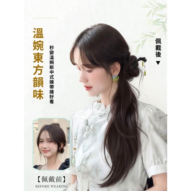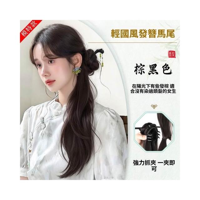 梵花 新中式假髮馬尾女輕國風馬尾假髮抓夾古風漢服旗袍編髮側馬尾辮