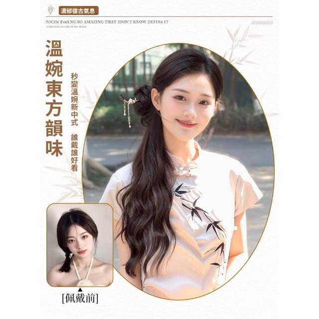 梵花 假髮馬尾女新中式抓夾古風假髮辮子模擬髮旗袍國風捲髮低馬尾髮飾