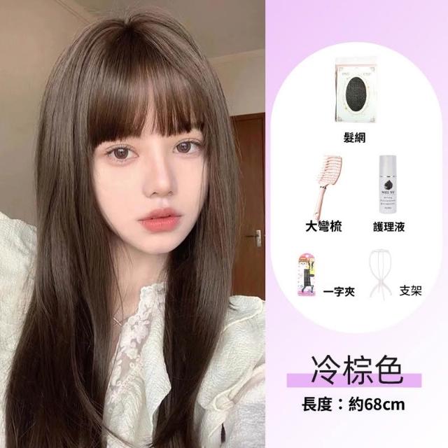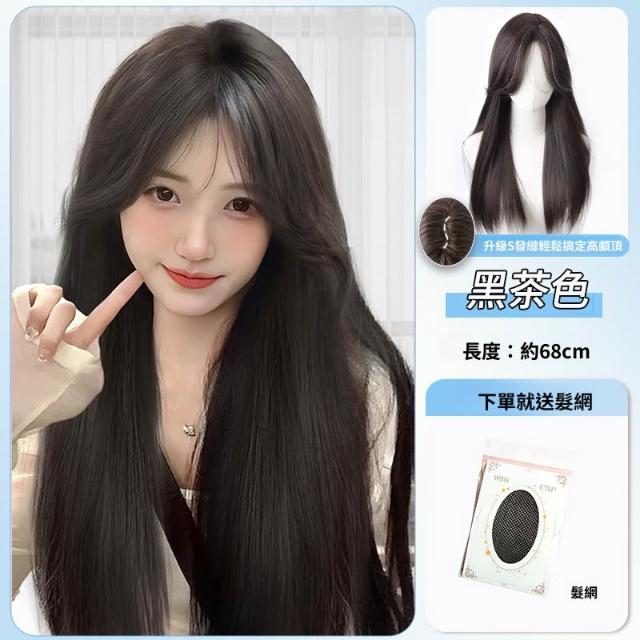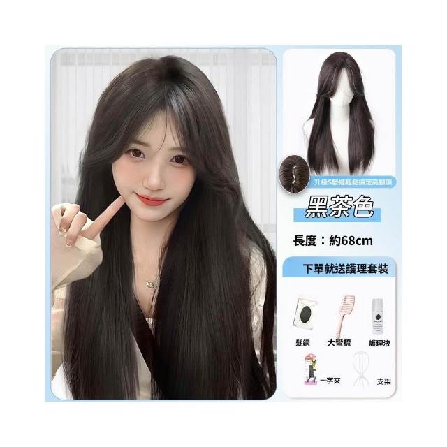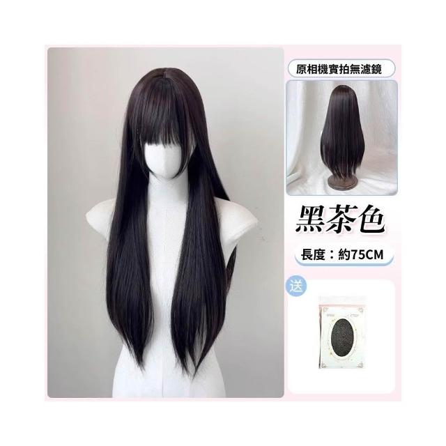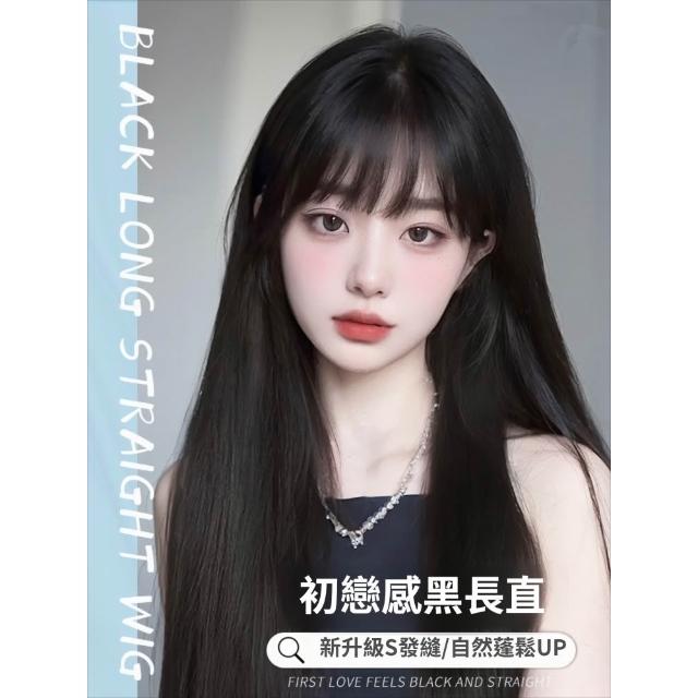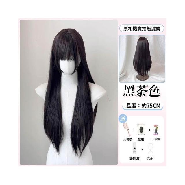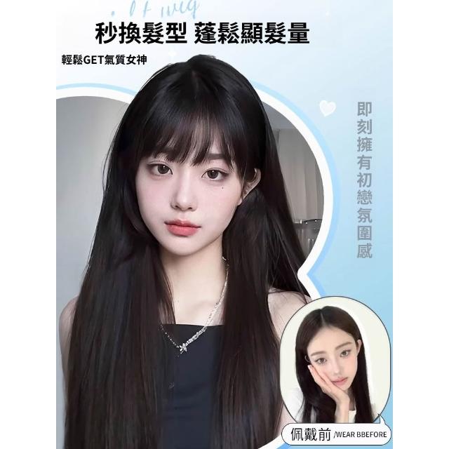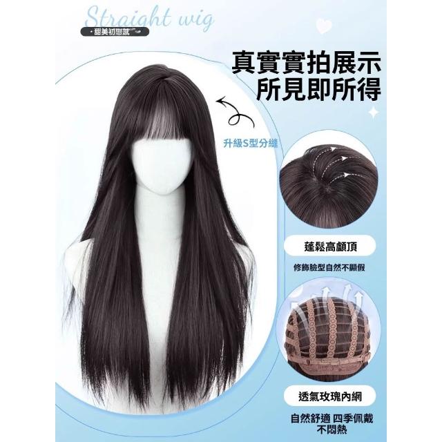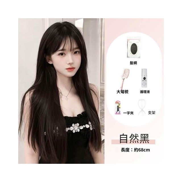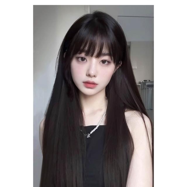 梵花 假髮女長髮齊瀏海黑長直全頭套自然模擬髮假髮套