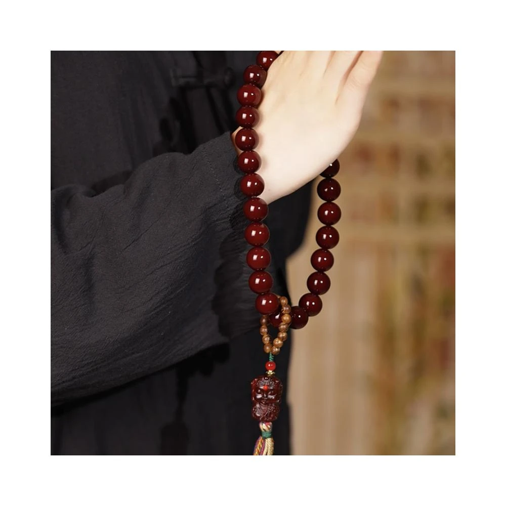 梵花 天然陰皮原生態白玉菩提根手串手持硃砂供佛珠盤玩菩提子男女