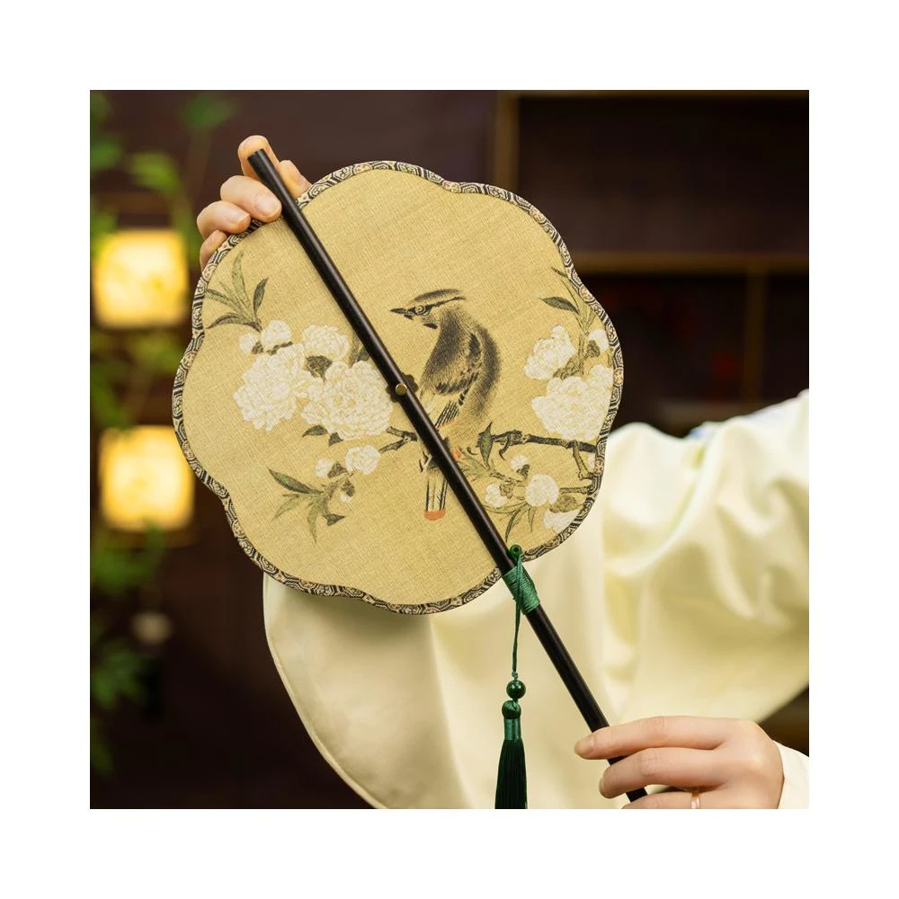 梵花 中式腰扇箭竹長柄古風扇子夏天便攜可捲漢服專用舞蹈扇折疊