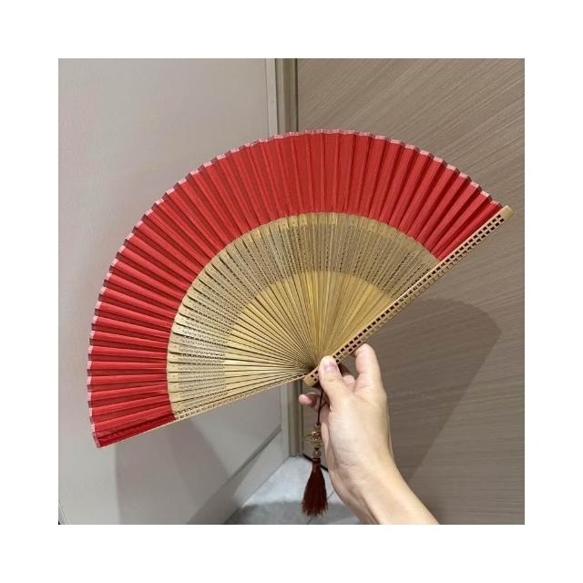 梵花 新中式折扇純色扇子中國風便攜真絲鏤空竹扇旗袍漢服女式晨袍扇子