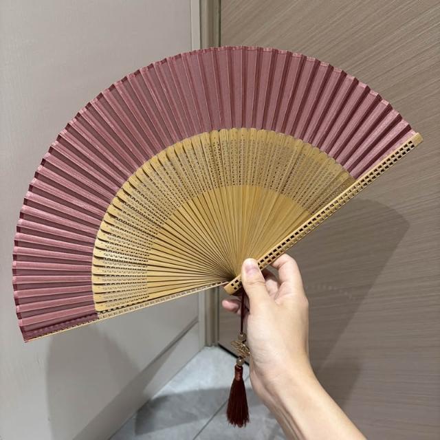 梵花 新中式折扇純色扇子中國風便攜真絲鏤空竹扇旗袍漢服女式晨袍扇子