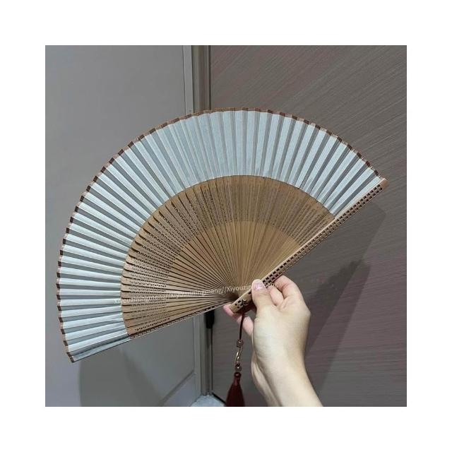 梵花 新中式折扇純色扇子中國風便攜真絲鏤空竹扇旗袍漢服女式晨袍扇子
