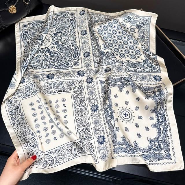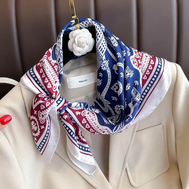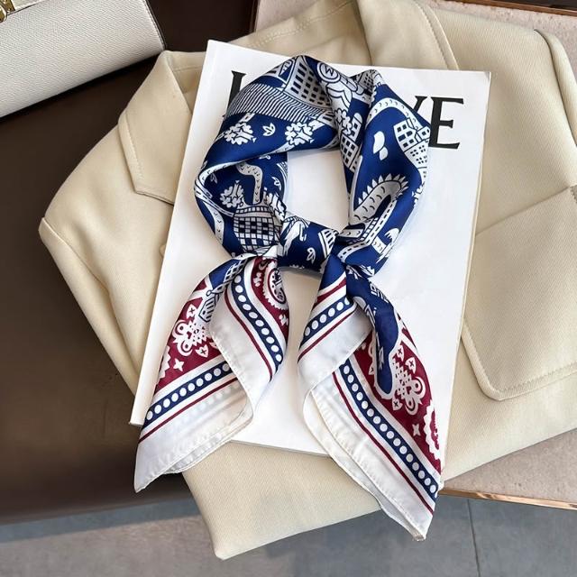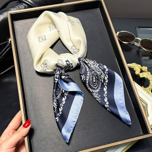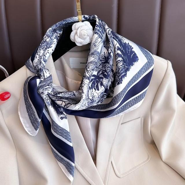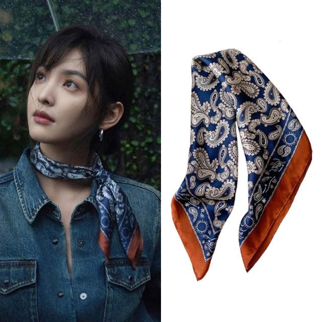 梵花 法式復古藏青色小方巾女百搭配西裝襯衫領巾絲巾髮帶薄款圍巾飄帶