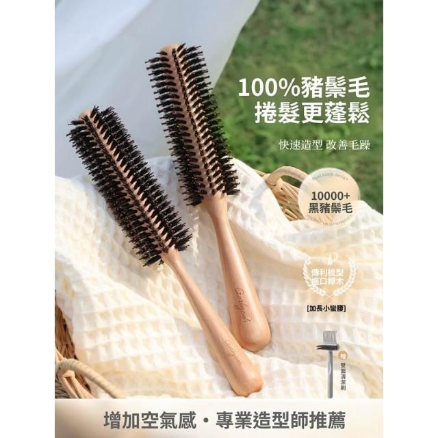 梵花 豬鬃毛捲髮梳女士造型專用蓬鬆顱頂家用吹發防靜電圓滾筒梳子