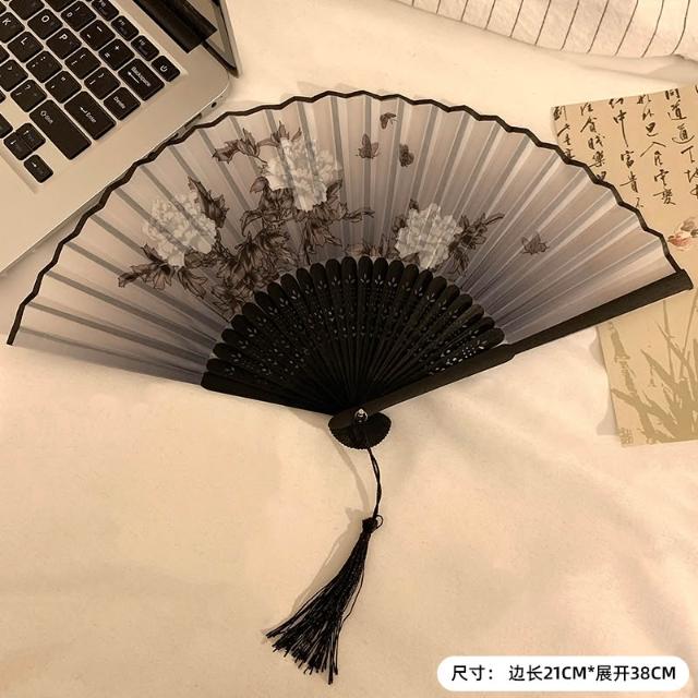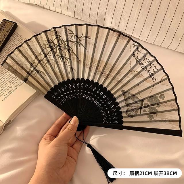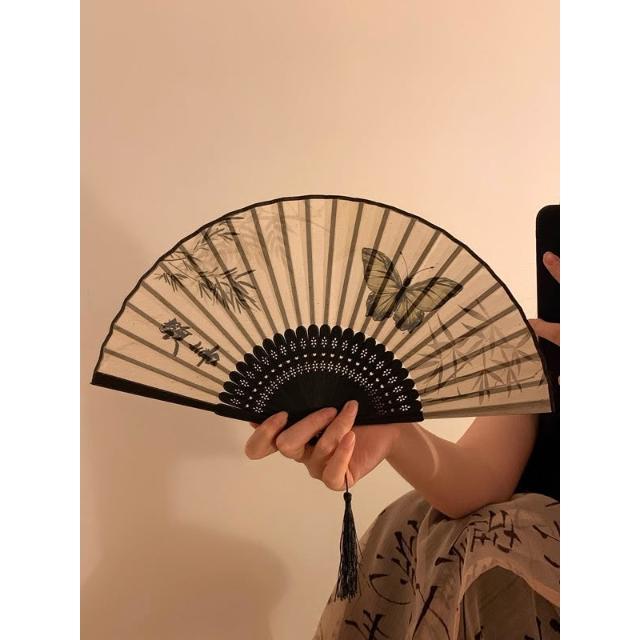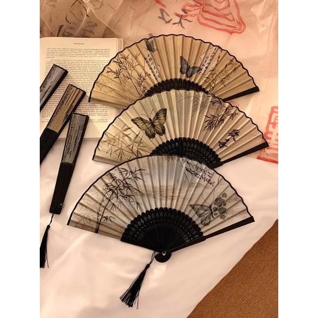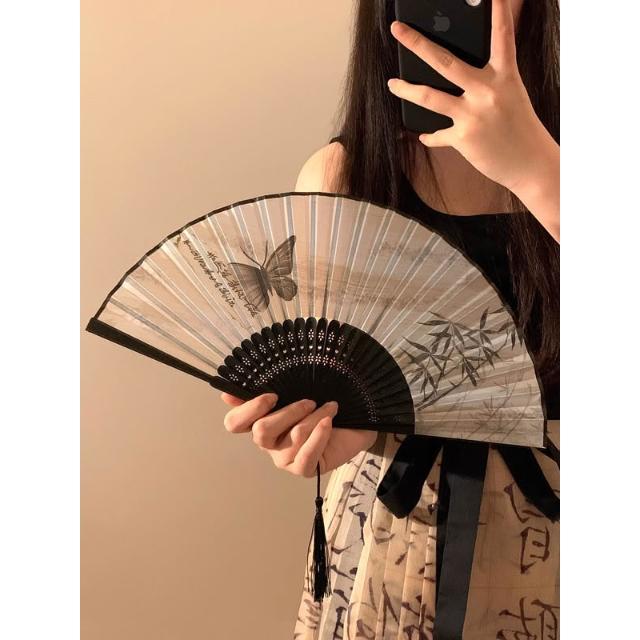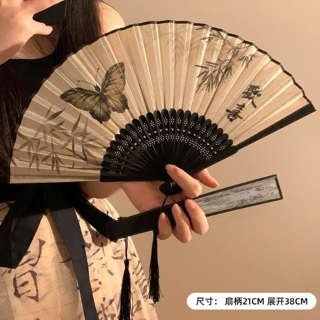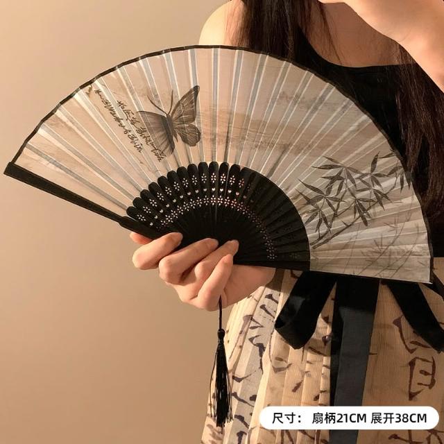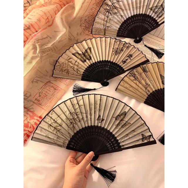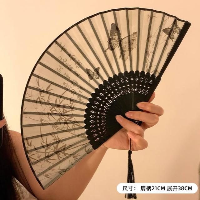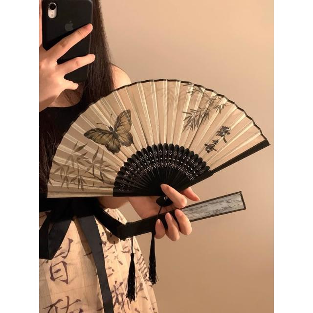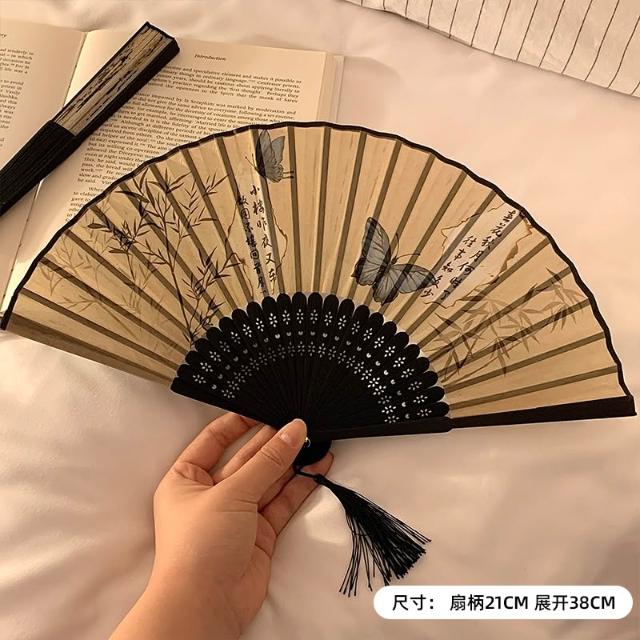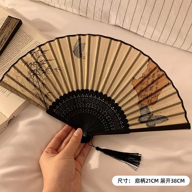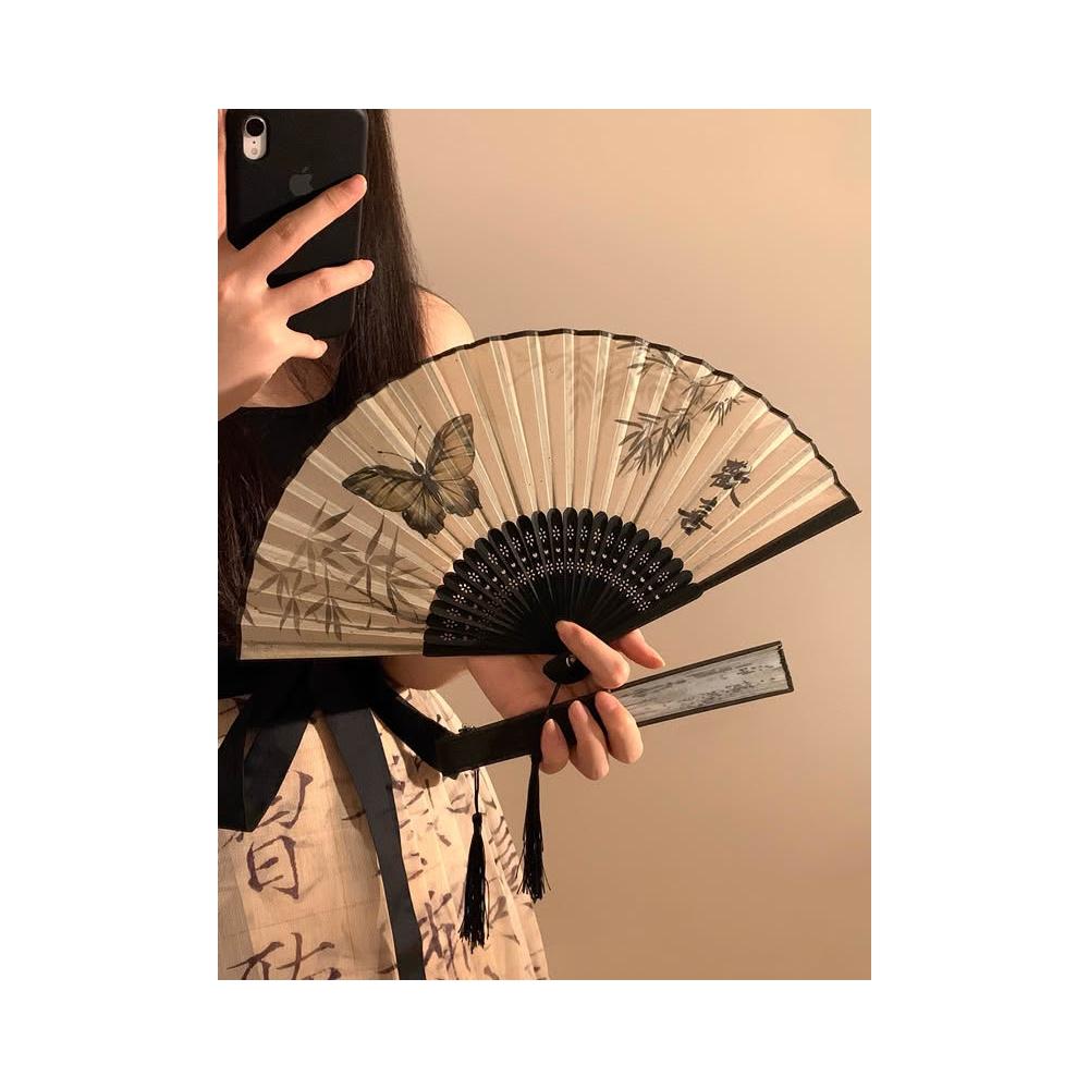 梵花 古風蝴蝶折疊扇子女夏天便攜隨身漢服旗袍舞蹈拍照新中式國風竹扇
