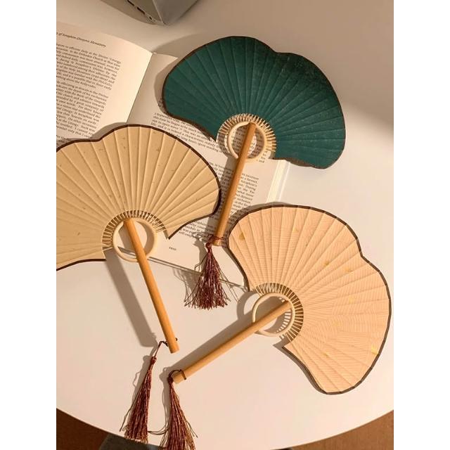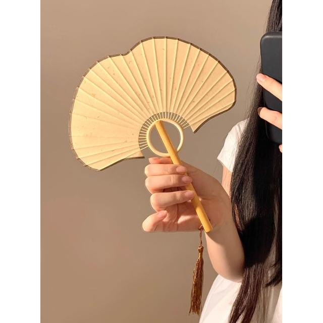 梵花 古風銀杏宣紙小扇子女夏天新中式漢服舞蹈芭蕉扇便攜長柄團扇蒲扇
