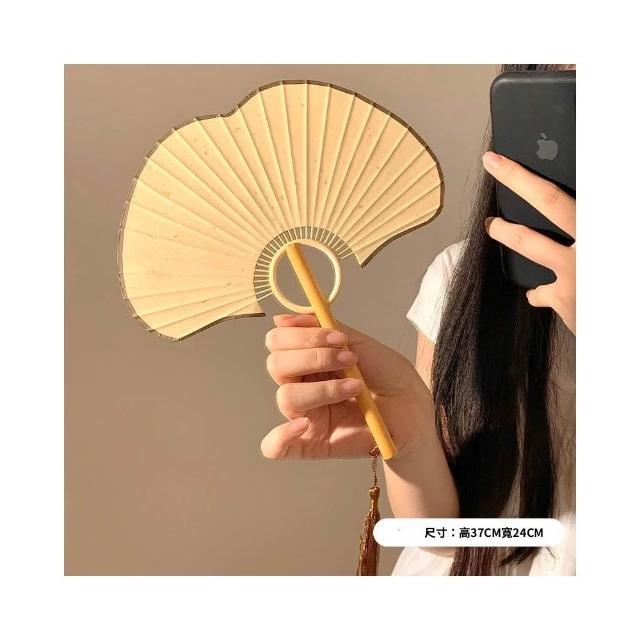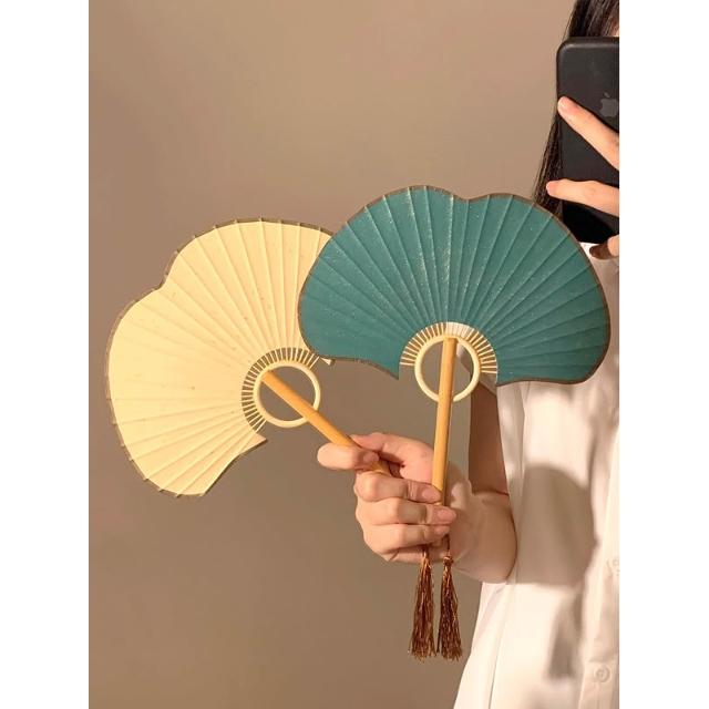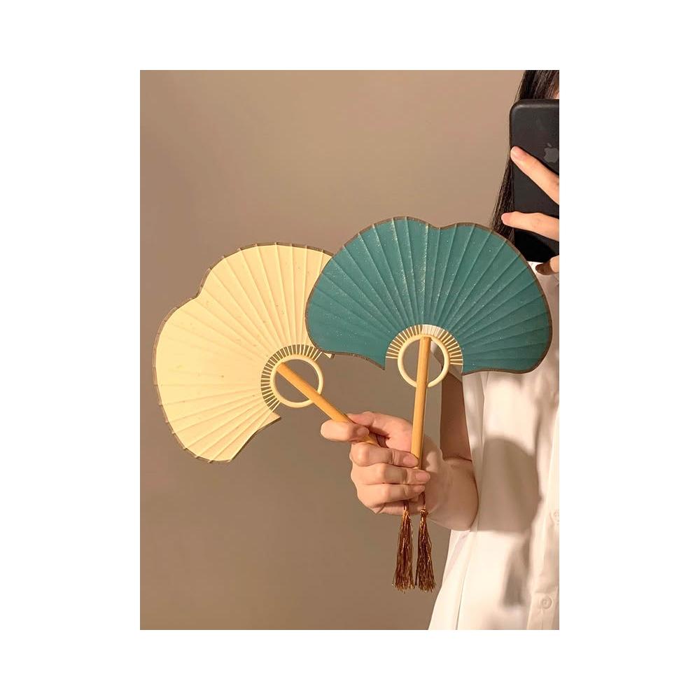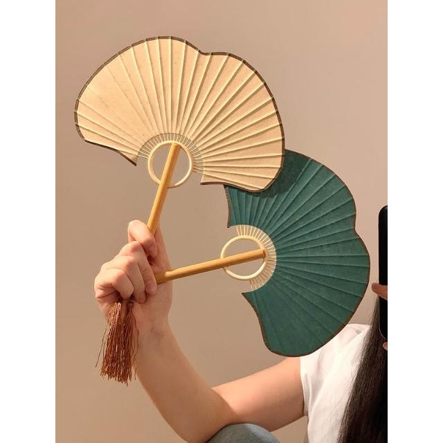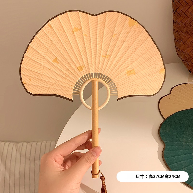 梵花 古風銀杏宣紙小扇子女夏天新中式漢服舞蹈芭蕉扇便攜長柄團扇蒲扇