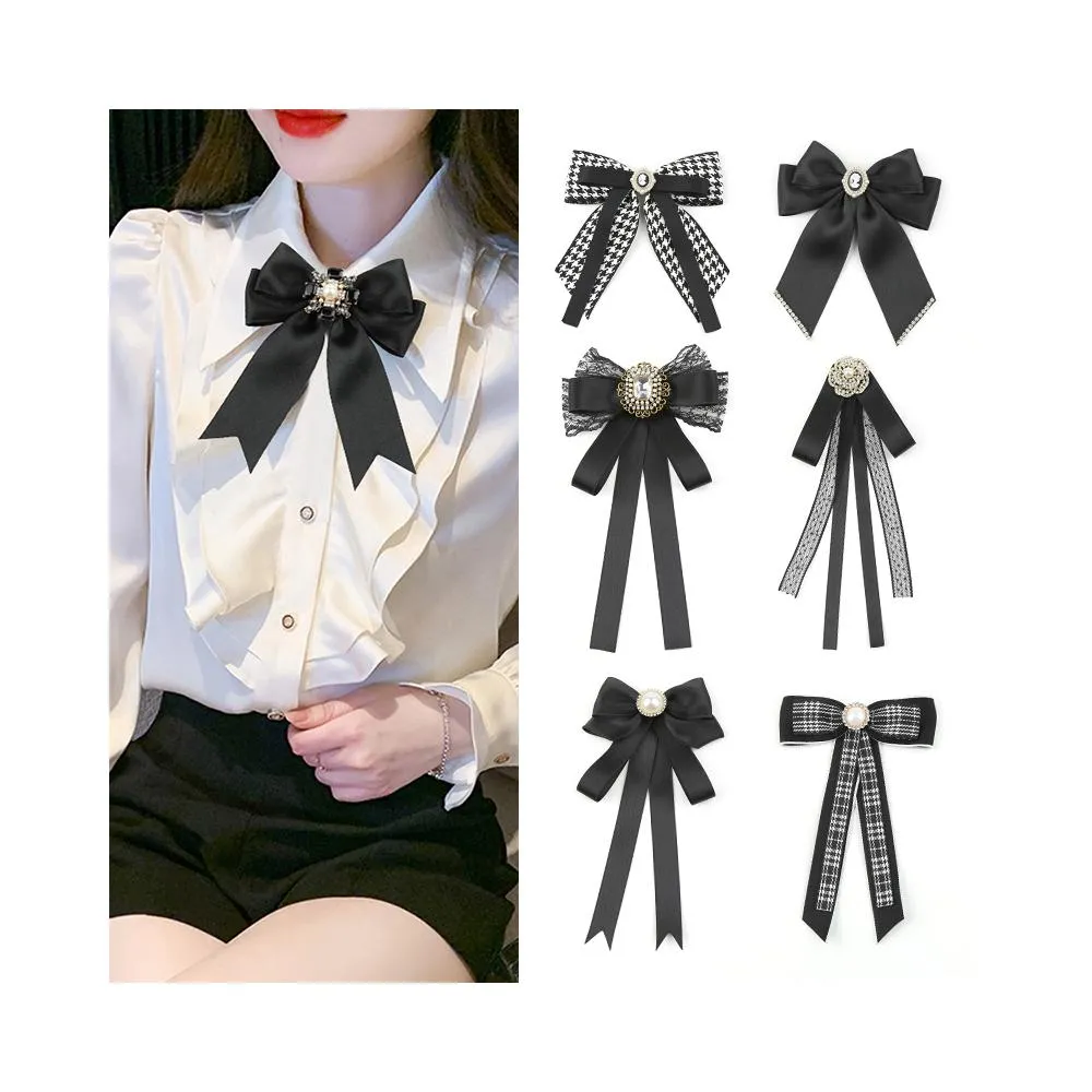 梵花 領結女裝飾蝴蝶結黑色飄帶學院風格復古韓版女襯衫襯衫別針配件