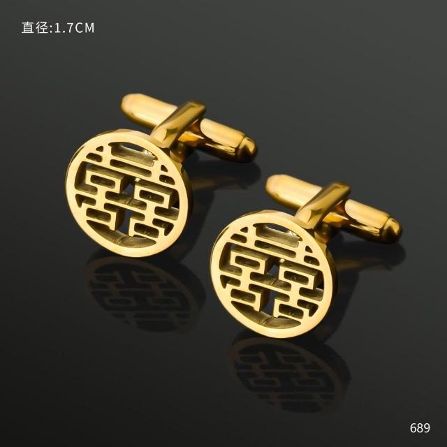 梵花 金色鏤空喜字袖扣男士結婚新郎法式襯衫袖口扣釘襯衫裝飾國風高級