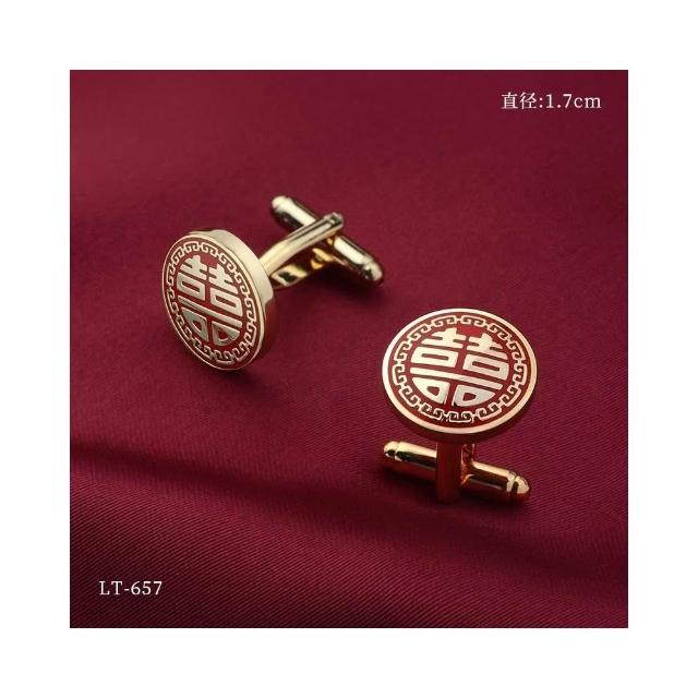 梵花 金色鏤空喜字袖扣男士結婚新郎法式襯衫袖口扣釘襯衫裝飾國風高級