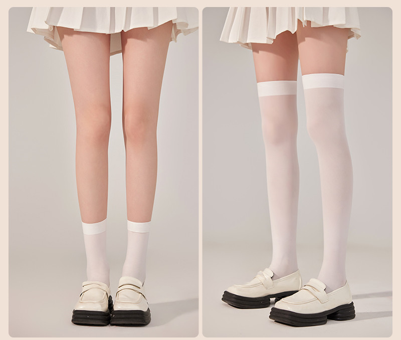 梵花 小腿襪女夏季薄款壓力瘦腿JK絲襪過膝長筒白色半截中筒白絲