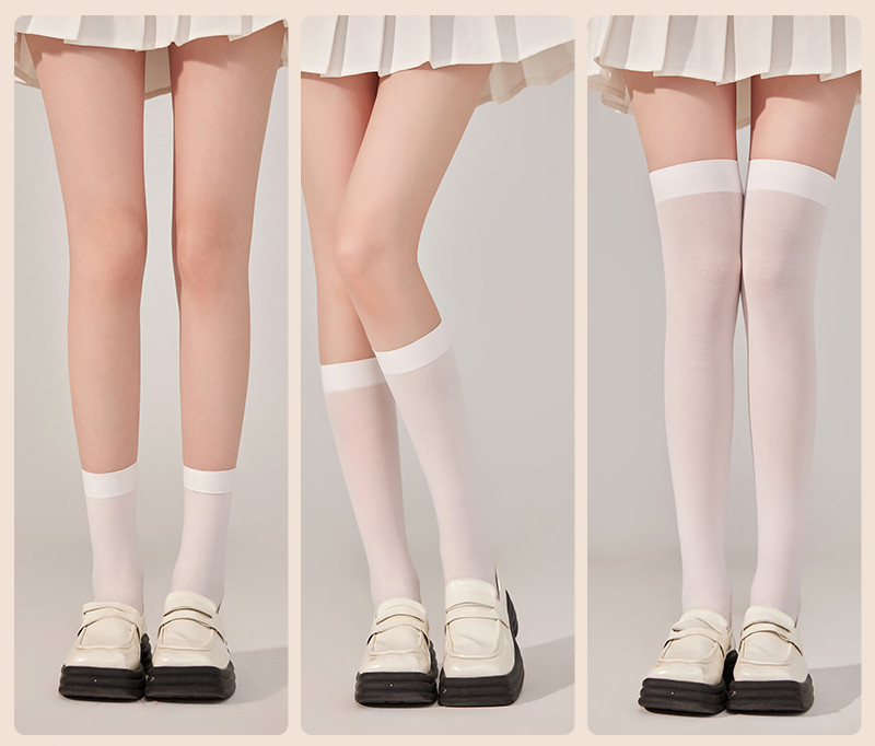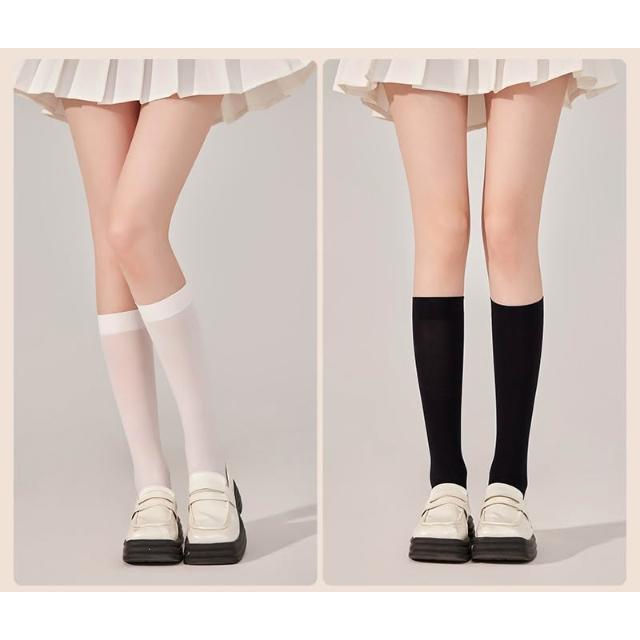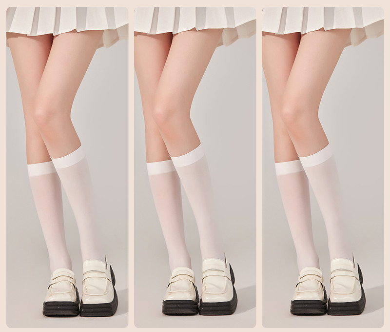梵花 小腿襪女夏季薄款壓力瘦腿JK絲襪過膝長筒白色半截中筒白絲