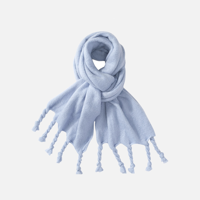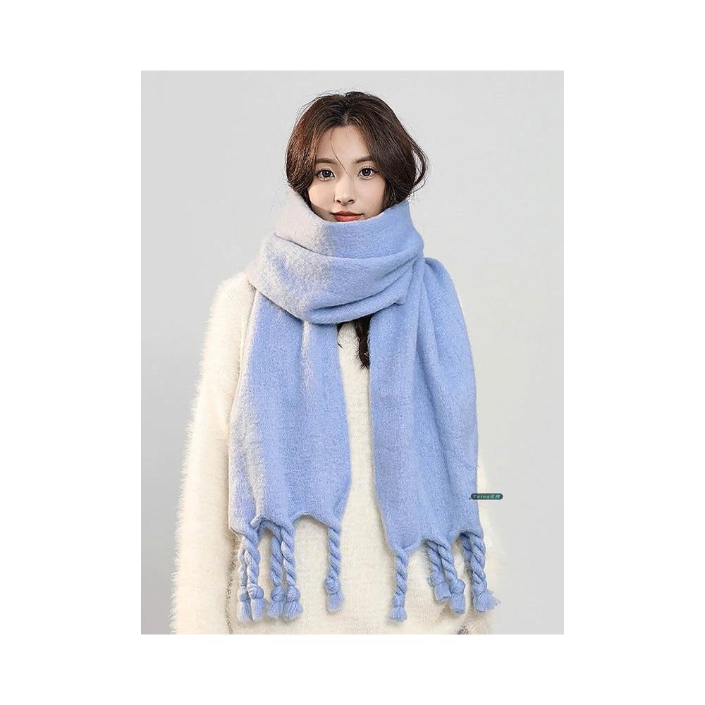 梵花 藍色毛絨圍巾女冬季加厚百搭保暖韓系氛圍感披肩圍脖