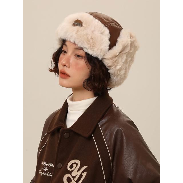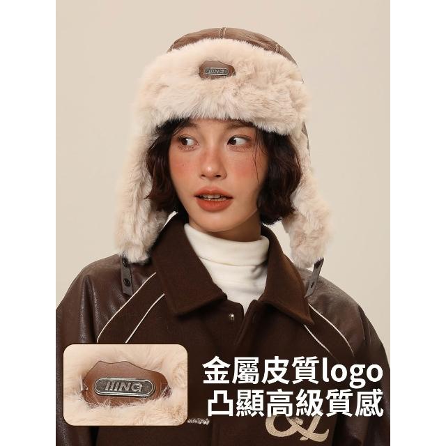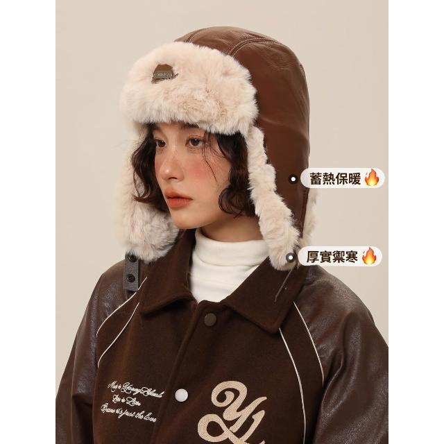 梵花 復古皮革飛行員帽秋冬男女保暖雷鋒帽加絨護耳騎乘機車帽