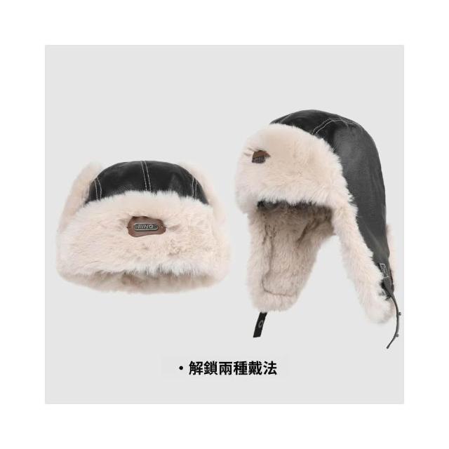 梵花 復古皮革飛行員帽秋冬男女保暖雷鋒帽加絨護耳騎乘機車帽