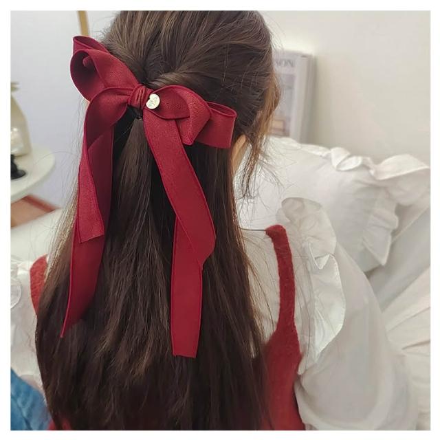 梵花 飄帶蝴蝶結髮飾髮夾頂夾法式女孩絲帶髮卡頭飾