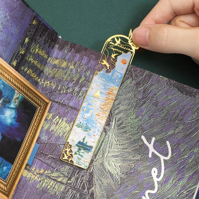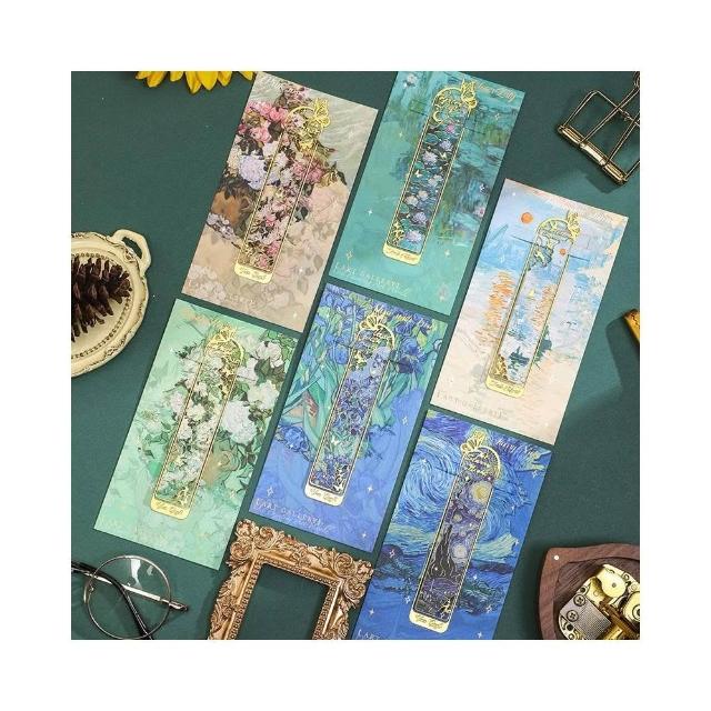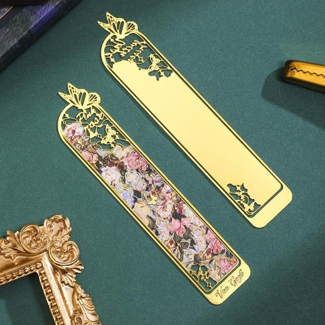 梵花 復古油畫書籤金屬鏤空書扣獎勵學生高檔精緻高級感精美禮物