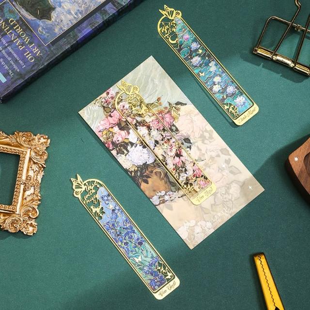梵花 復古油畫書籤金屬鏤空書扣獎勵學生高檔精緻高級感精美禮物