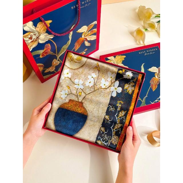 梵花 絲綢小絲巾禮盒真絲送媽媽長輩蘇州禮物文創伴手禮紀念品