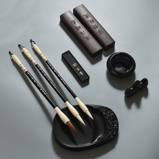 梵花 文房四寶套裝筆墨紙硯毛筆套裝初學專業級狼羊兼書法套裝硯台筆架