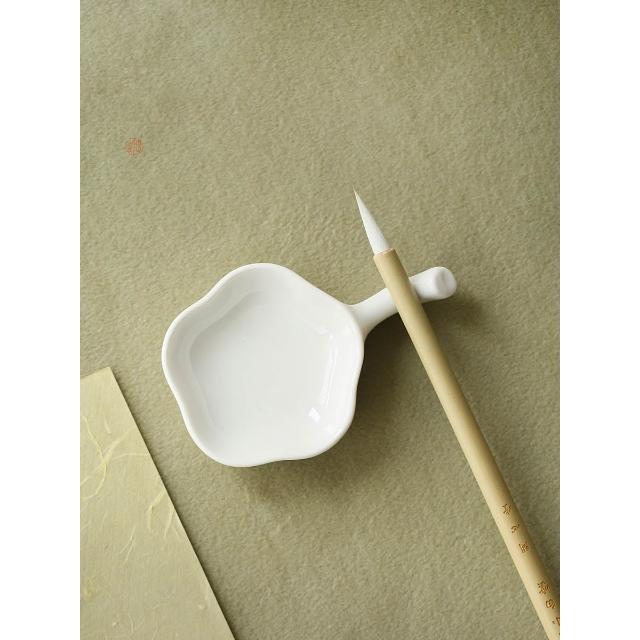 梵花 墨碟筆擱筆掭白瓷簡易硯台墨池書法專用文房四寶擱毛筆沾墨瓷盤