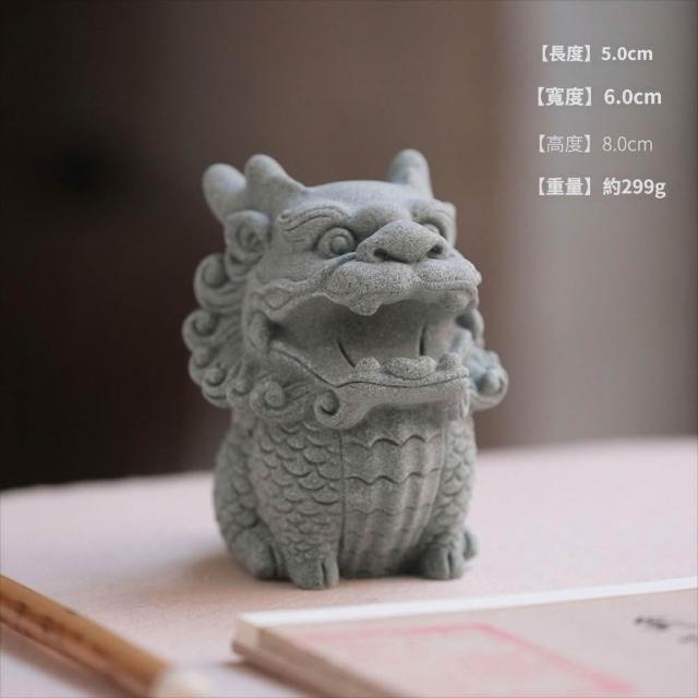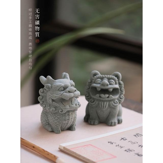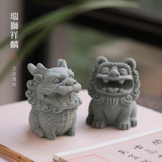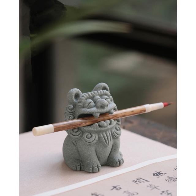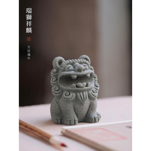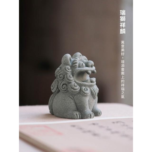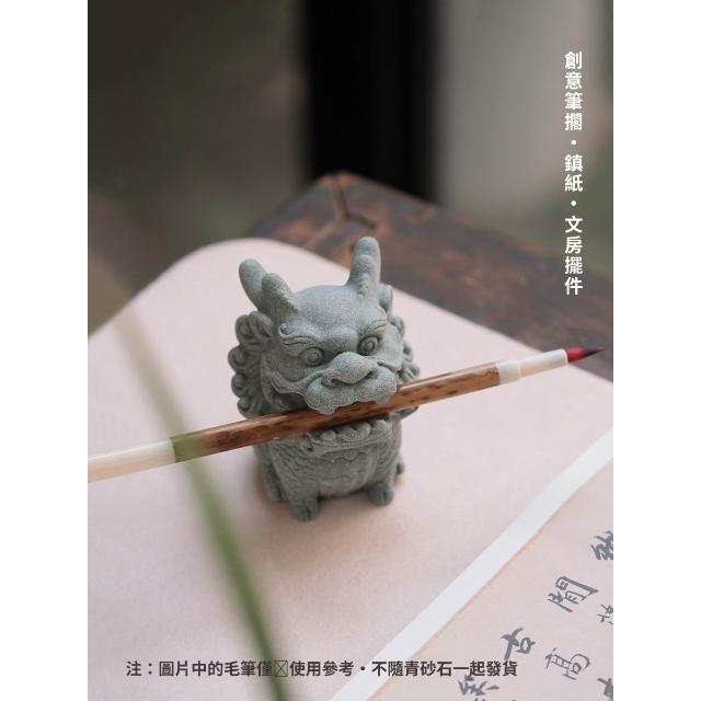 梵花 青砂石造像銜筆瑞獅麒麟創意擺飾動物造像擺飾筆托文房四寶雕塑水缸造景