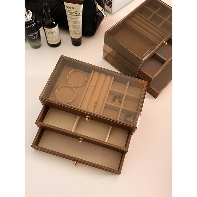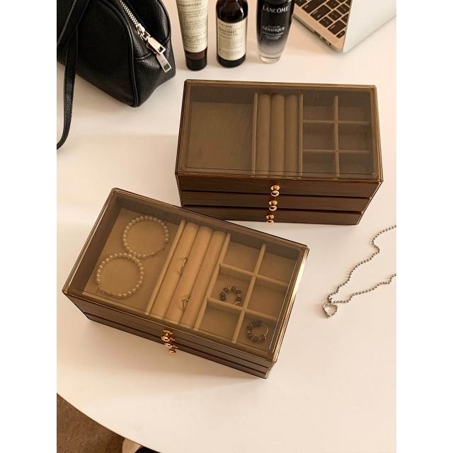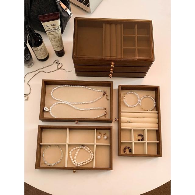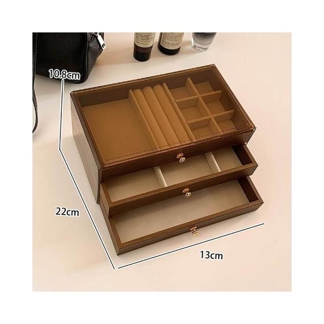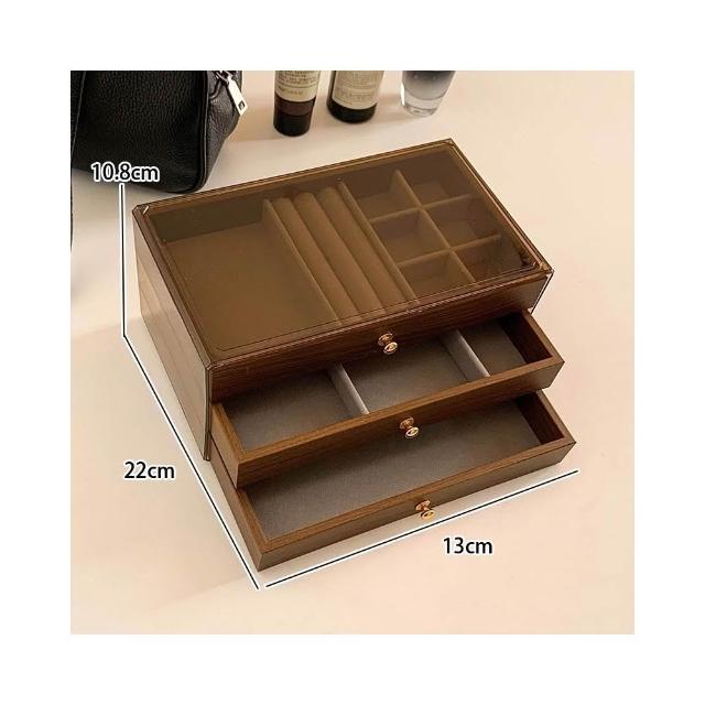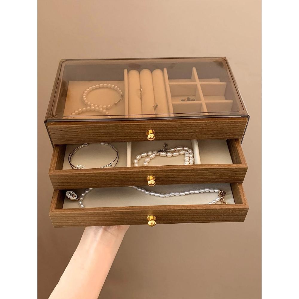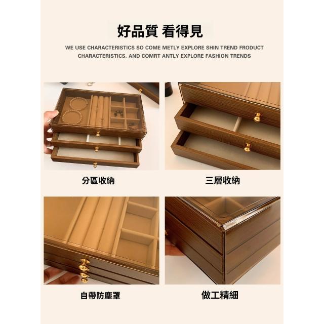 梵花 復古胡桃木三層首飾盒大容量耳環戒指項鍊手飾品收納盒