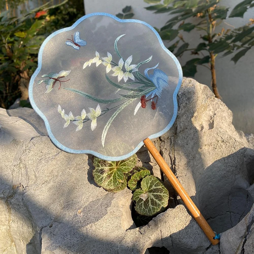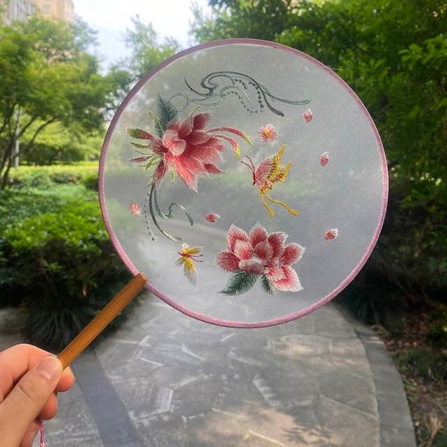梵花 蘇繡雙面刺繡團扇古風漢服旗袍扇舞蹈表演圓扇中國風繡花扇子夏天