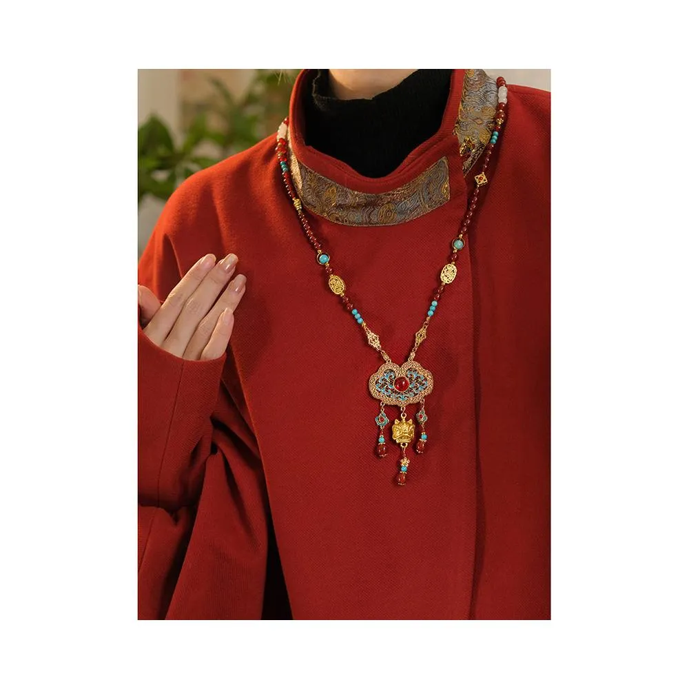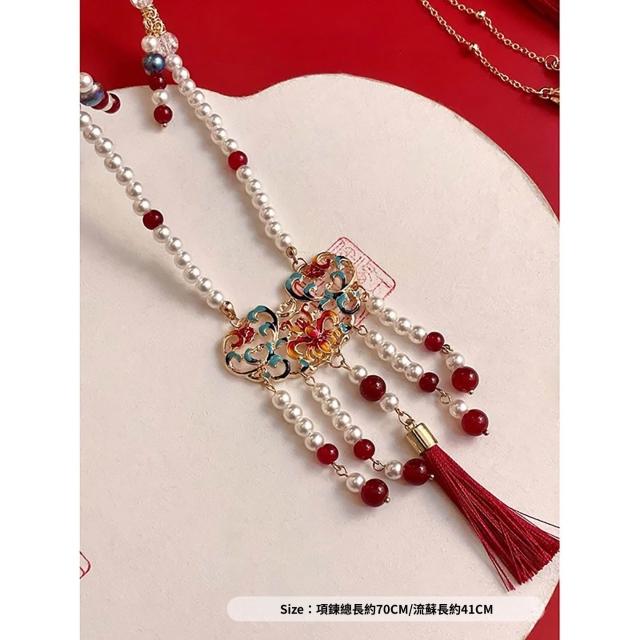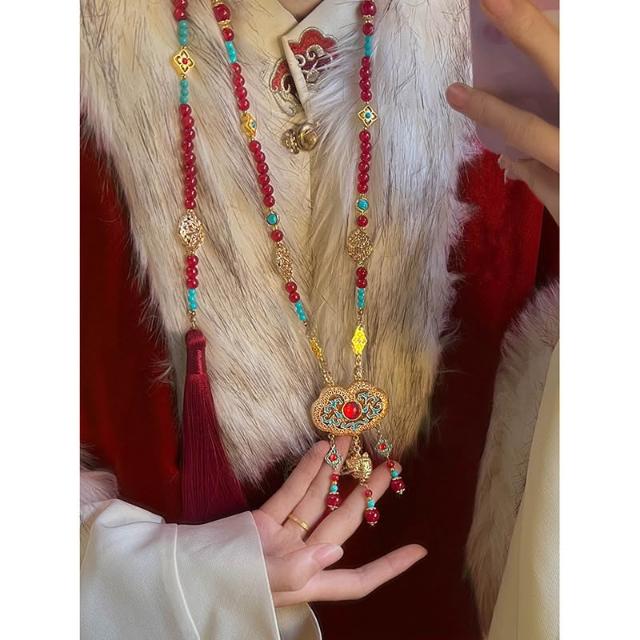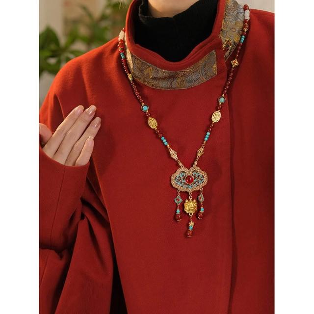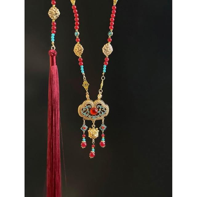 梵花 新中式古風平安鎖背雲長瓔珞流蘇項鍊女國風漢服馬面裙旗袍配件