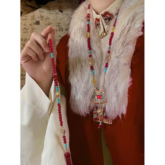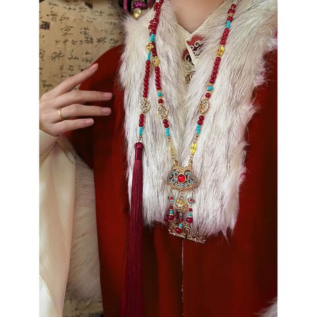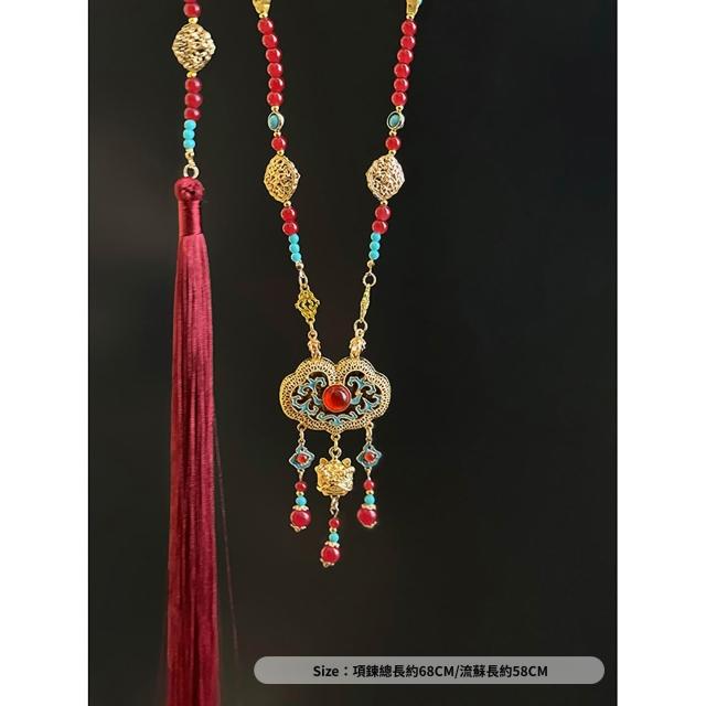 梵花 新中式古風平安鎖背雲長瓔珞流蘇項鍊女國風漢服馬面裙旗袍配件