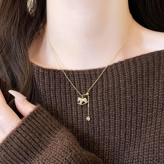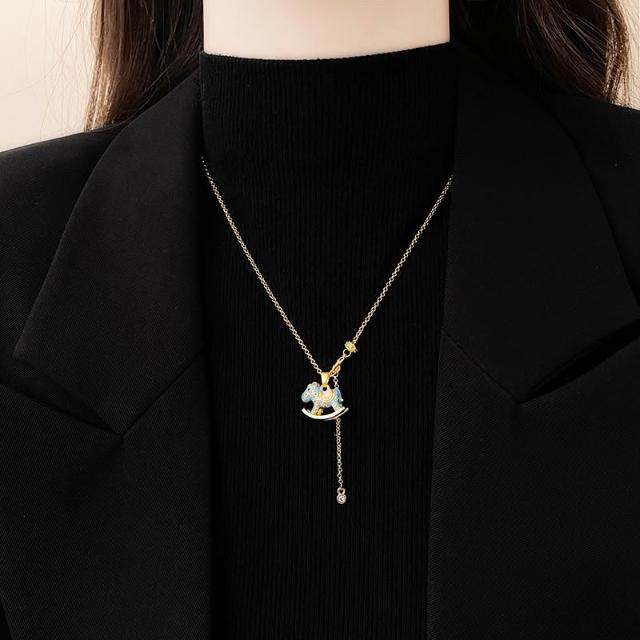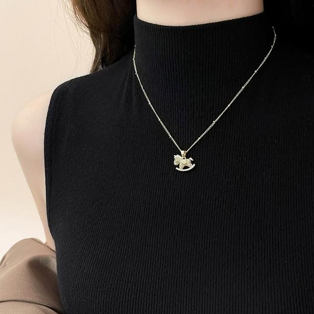 梵花 金色小馬珍珠吊墜項鍊女高級感輕奢小眾毛衣配件馬年新款頸鍊