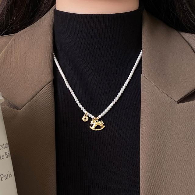 梵花 金色小馬珍珠吊墜項鍊女高級感輕奢小眾毛衣配件馬年新款頸鍊