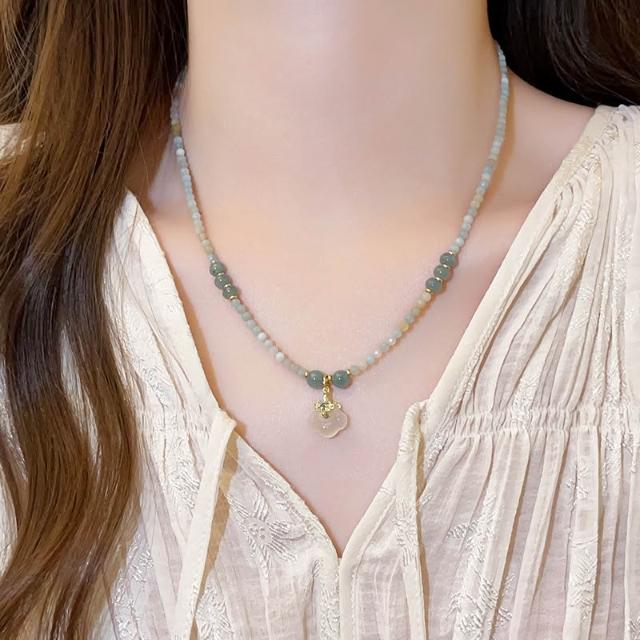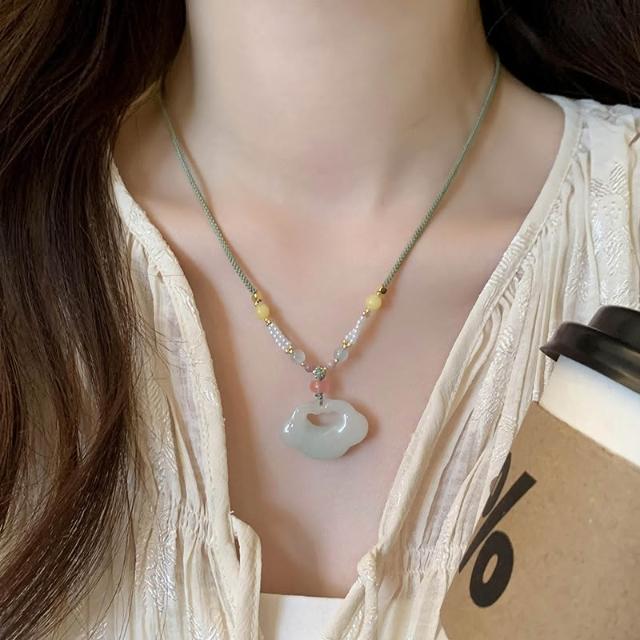 梵花 天山翠祥雲平安鎖項鍊女編繩吊墜新中式漢服玉石配件新款國風
