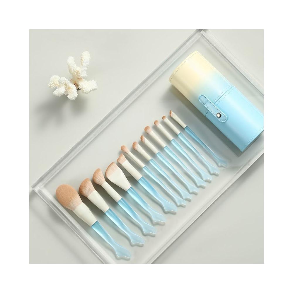梵花 12支海豚尾化妝刷組全套刷子魚尾薄弧一字粉底刷初學者便攜