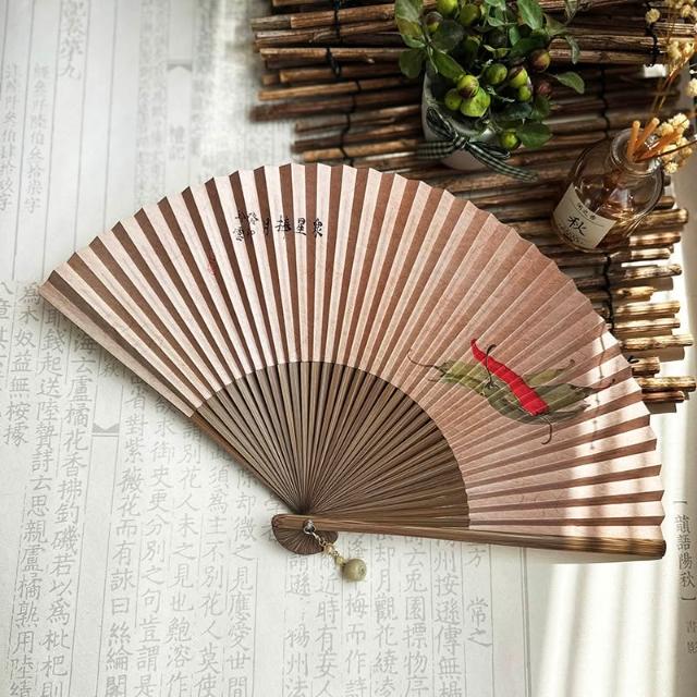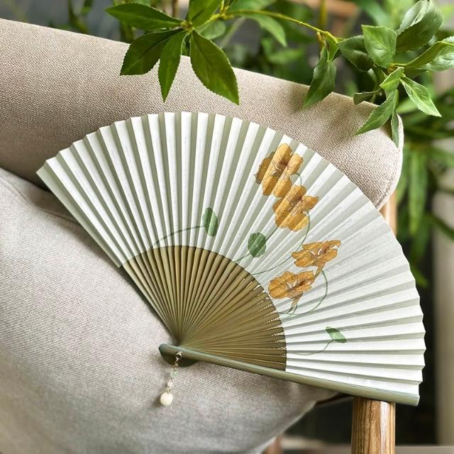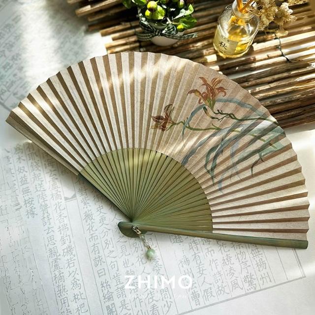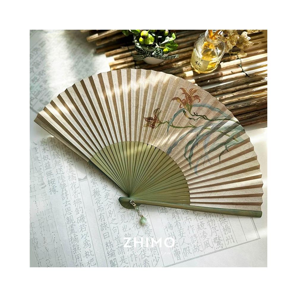 梵花 原創仿古中國風女式紙面穿扇古典漢服隨身日用扇子忘憂草折扇