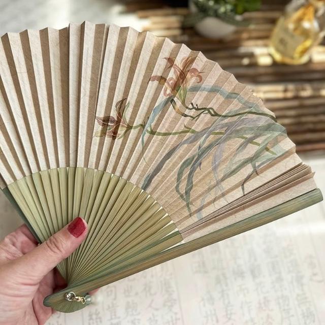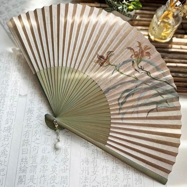 梵花 原創仿古中國風女式紙面穿扇古典漢服隨身日用扇子忘憂草折扇