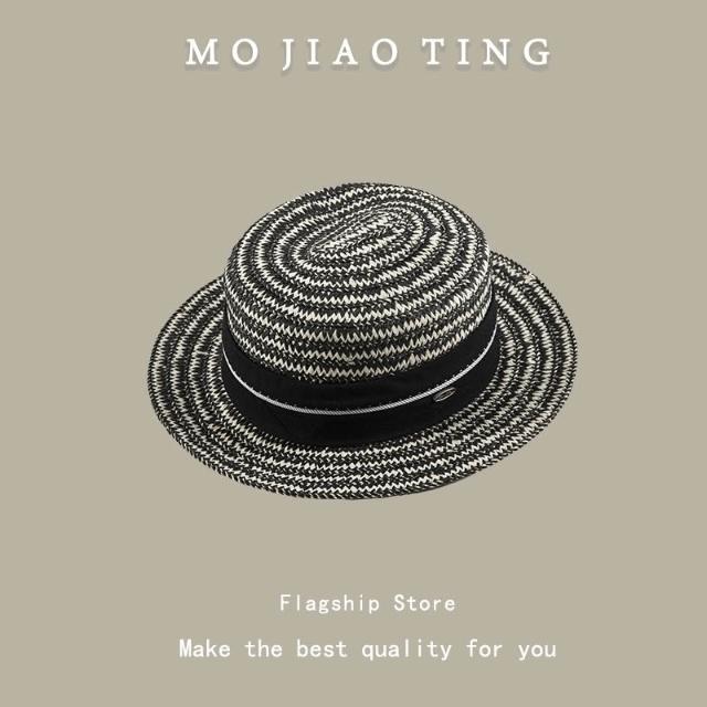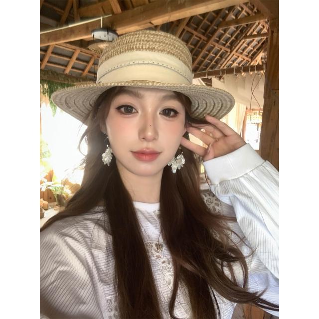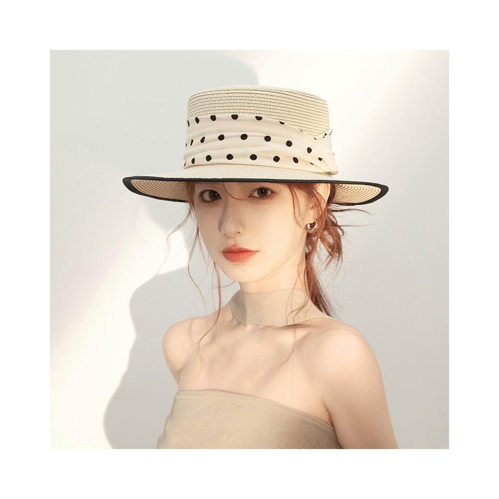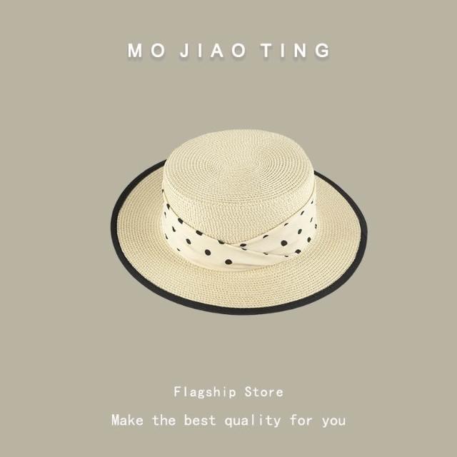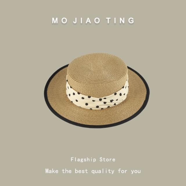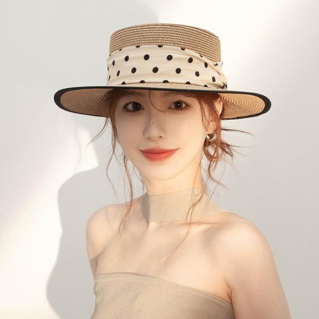 梵花 法式波點平頂草帽女夏季海邊度假沙灘帽遮陽防曬包邊禮帽太陽帽子