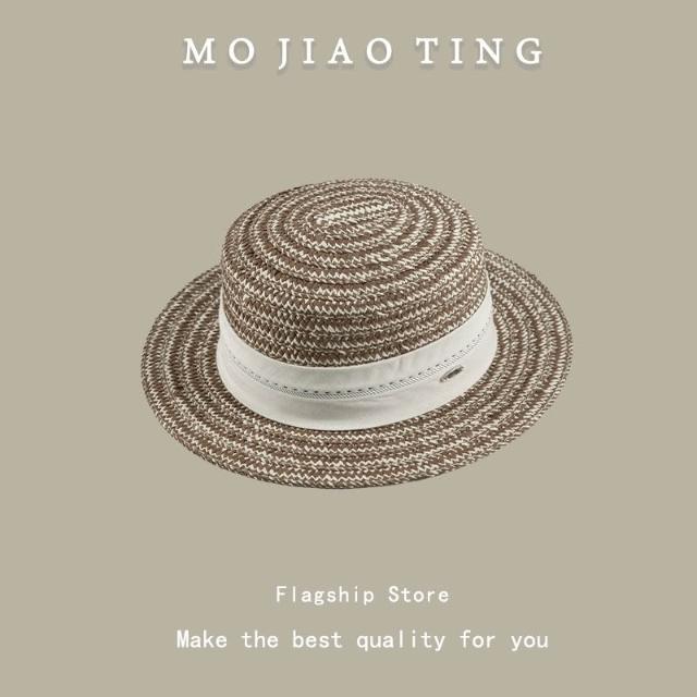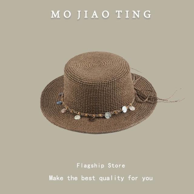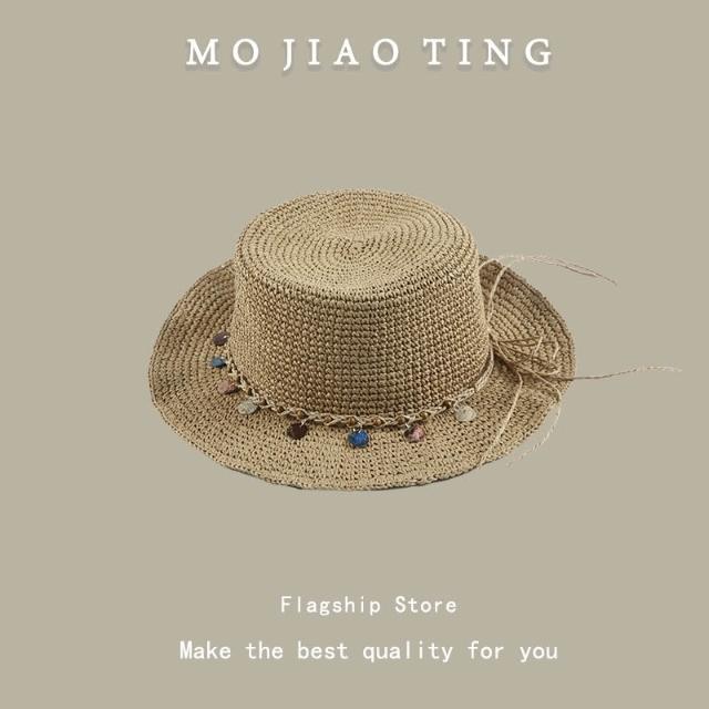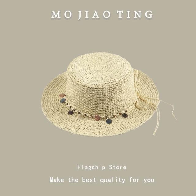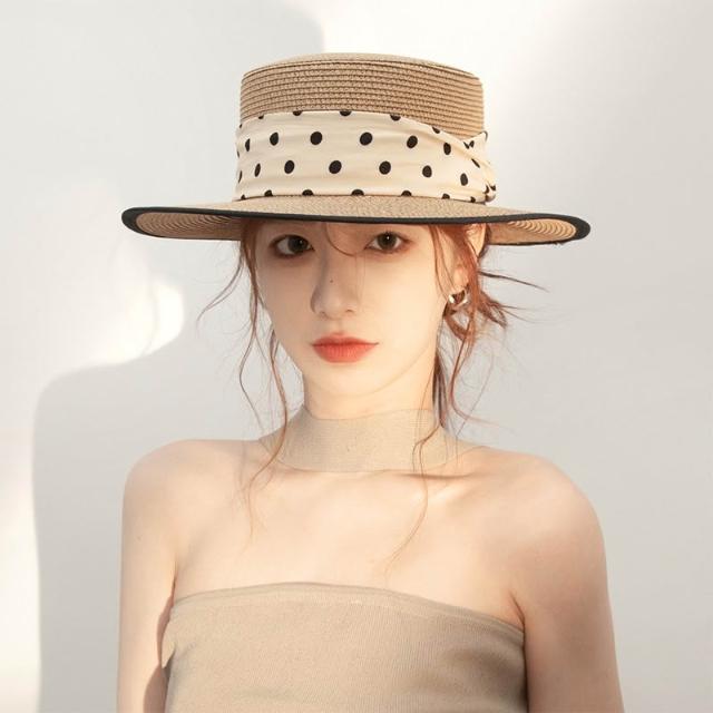 梵花 法式波點平頂草帽女夏季海邊度假沙灘帽遮陽防曬包邊禮帽太陽帽子