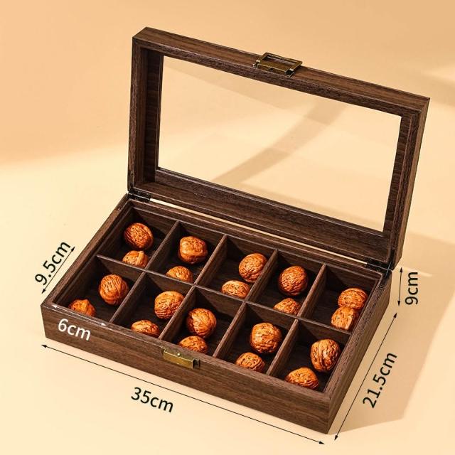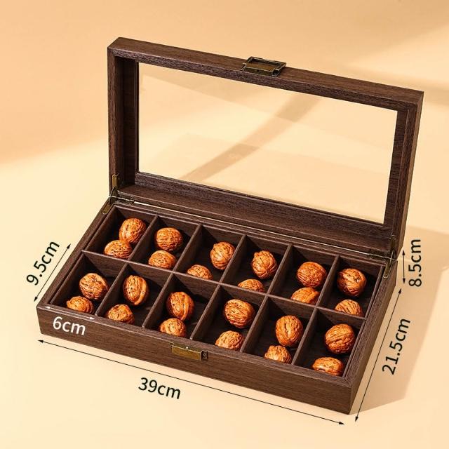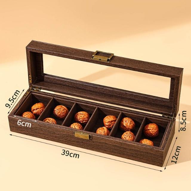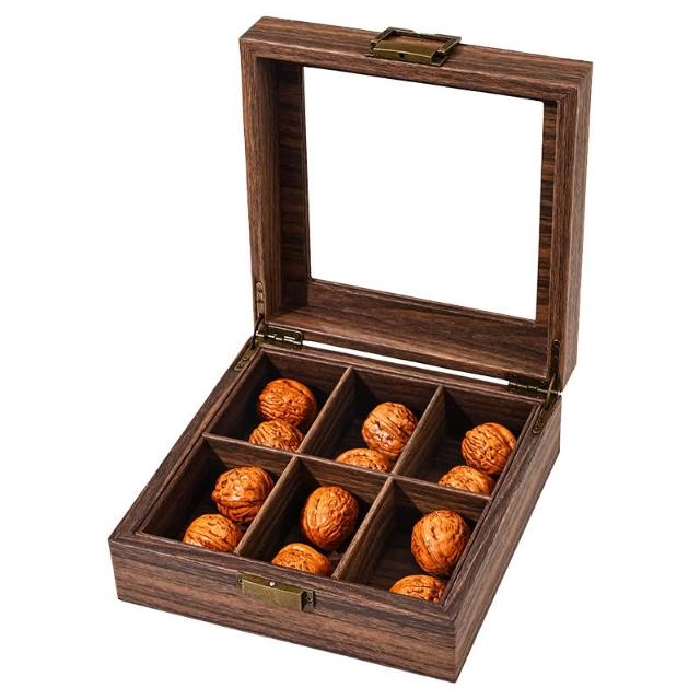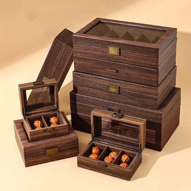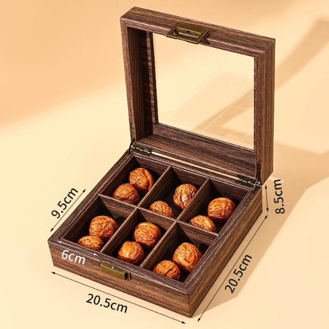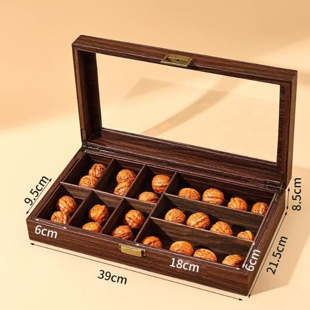 梵花 復古木紋皮文玩核桃收納盒獅子頭核桃收藏箱佛珠核桃展示盒子
