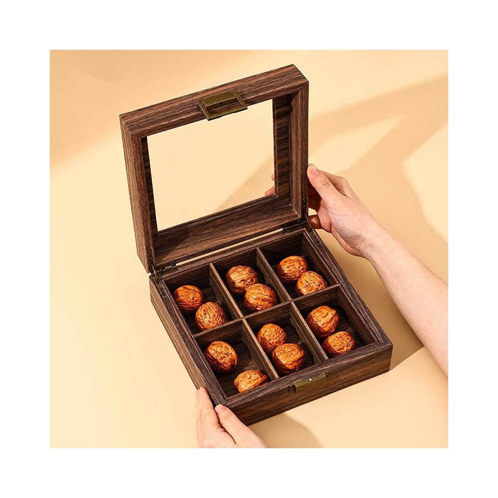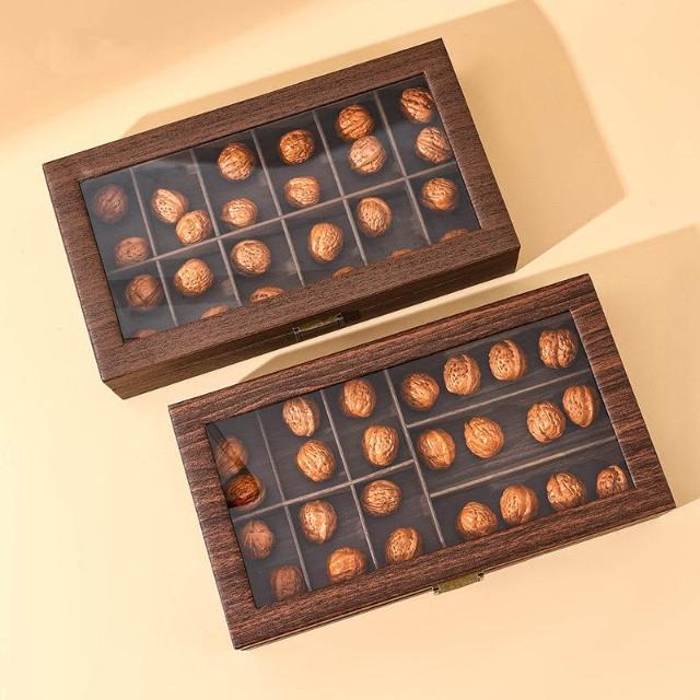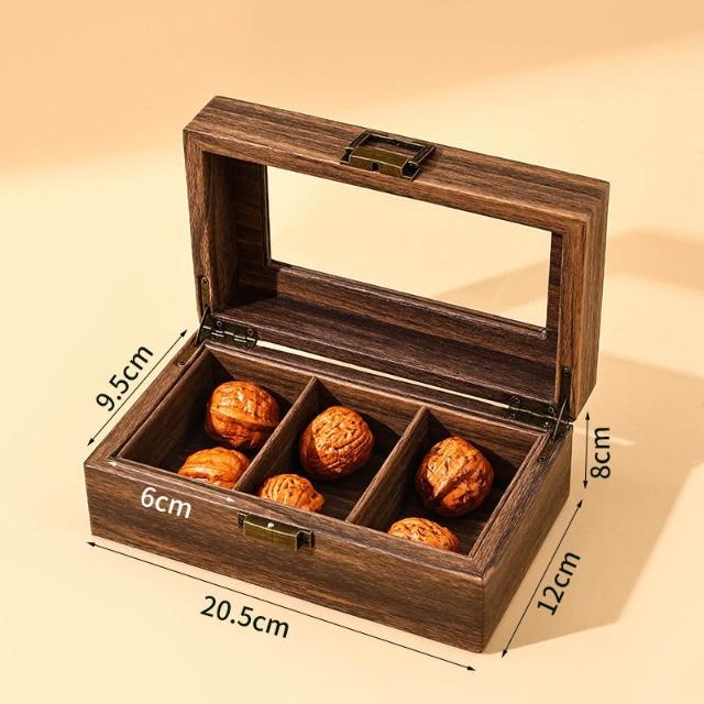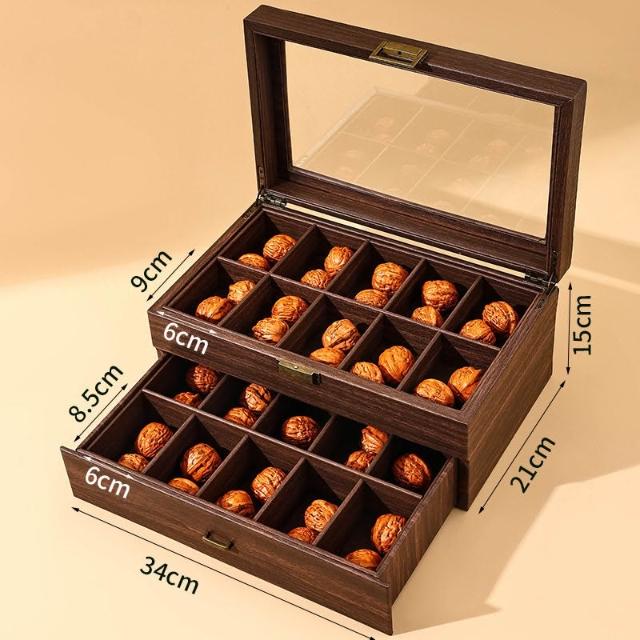 梵花 復古木紋皮文玩核桃收納盒獅子頭核桃收藏箱佛珠核桃展示盒子