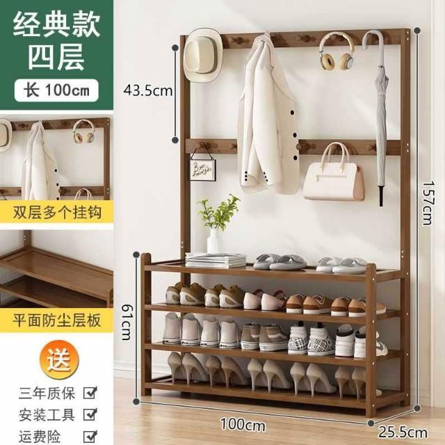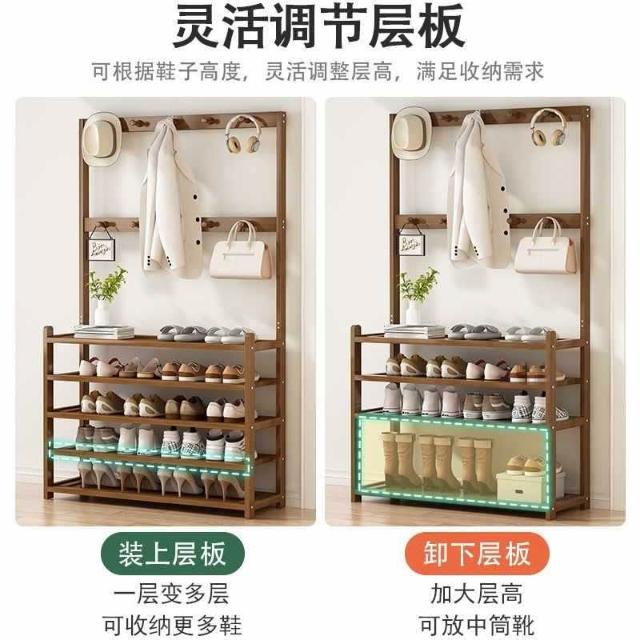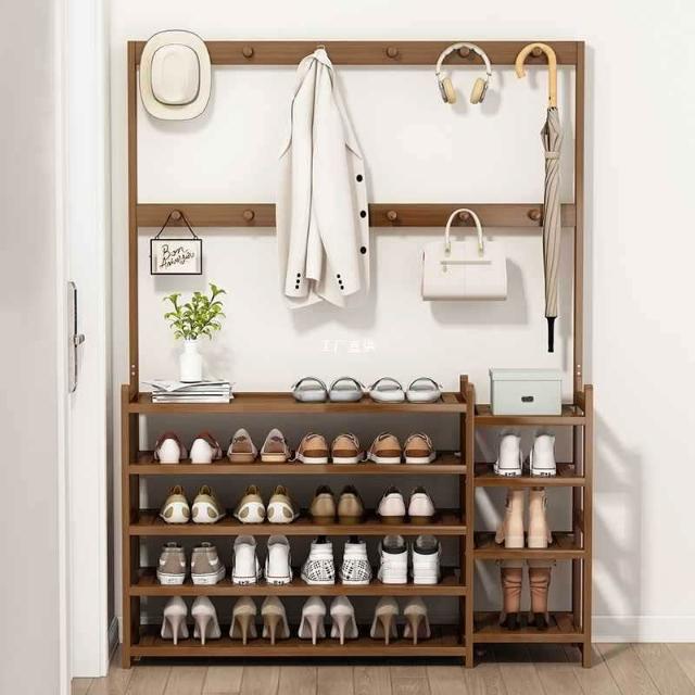 簡易鞋架衣帽架一體門口衣服收納架入戶門鞋架子入戶鞋櫃掛衣一體